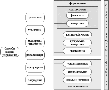 Реализация рассмотренных способов обеспечения защиты информации осуществляется применением различных средств: формальных и неформальных.