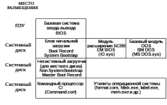 Все компоненты DOS, исключая BIOS, размещаются на одном или нескольких магнитных дисках в специальных областях и файлах. Один из дисков обеспечивает занесение DOS в память и запуск ее в работу. Этот процесс называется загрузкой DOS, а диск, с которого возможна загрузка системы, называется системным. На структуру системного диска накладываются определенные ограничения, связанные с порядком размещения на нем важнейших файлов DOS.