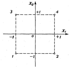 Рис. 22. Полной двухфакторной эксперимент на плоскости