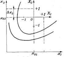 Перенесем начало координат факторного пространства в данную точку рис. 21. С этой целью введем новые переменные величины