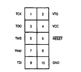 Доступ к модулю JTAG осуществляется через четыре вывода микроконтроллера, составляющих так называемый “порт тестового доступа” (Test Access Port — ТАР): TMS, TCK, TDI и TDO. Стандартная разводка 10-штырькового разъема для подключения JTAG-устройств приведена на рис. 9.4.