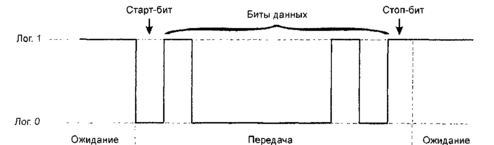 Рис. 7.1. Типичный формат асинхронной передачи данных (в данном примере – байта 10000010)
