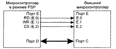 Рис. 6.1. Пример подключения внешнего микроконтроллера PIC в режиме PSP