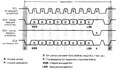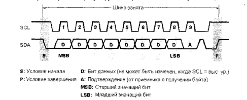 Рис. 7.12. Протокол передачи байта данных через шину I2C