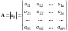 Матрица – это прямоугольная таблица чисел. Элемент с номерами ij матрицы А, аij находится на пересечении i-й строки и j-го столбца: