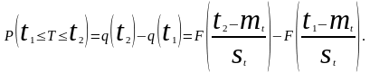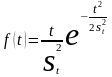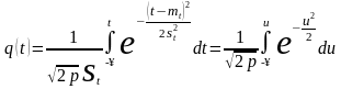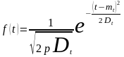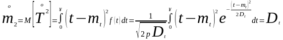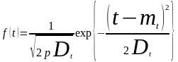 удем аппроксимировать статистический закон распределения случайной величины Т нормальным законом распределения f(t) вида