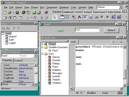 Містить стандартний інтерфейс Windows. Компоненти: візуальні і невізуальні.
