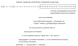 Параметр dwKeyData присутствует для всех сообщений клавиатуры и содержит следующую информацию: