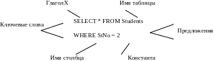 В SQL используется приблизительно тридцать операторов, каждый из которых "просит" СУБД выполнить определенное действие, например, прочитать данные, создать таблицу или добавить в таблицу новые данные. Все операторы SQL имеют одинаковую структуру, которая показана на рис. 9.1.