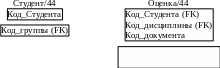 На рис. 8.12 приведены диаграмма ER-типа и отношения, сформированные по правилу 8.4.4.