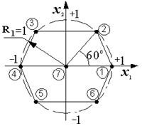 Рис. 16. Рототабельный план при n =2 на основе правильного шестиугольника