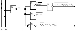 Рис.5.18 Полусумматор на элементах И, ИЛИ, НЕ
