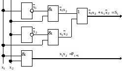 Рис.5.21 Полный сумматор, синтезированный из двух полусумматоров