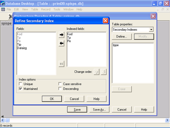 В последующем структуру таблицы можно изменить, вызвав команду Table/Restructure... (таблица/изменить структуру), которая доступна только для открытой таблицы.