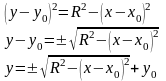 Уравнение окружности с центром в точке с координатами (x0,y0) и радиусом R записывается в виде: