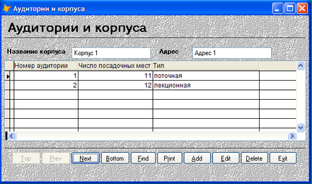 Рис. 2.15.12. Форма «Аудитории и корпуса»