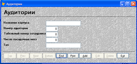 Рис. 2.15.9. Форма для таблицы «Аудитории»