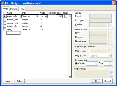 Рис. 2.15.5. Построение таблицы Аудитории (Auditoriums)
