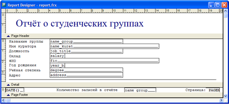 Рис. 2.16.7. Макет отчёта в окне конструктора форм