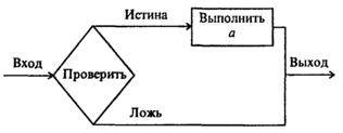 Может оказаться, что для одного из результатов проверки ничего предпринимать не надо. В этом случае можно применять только один обрабатывающий блок, рис.1.21: