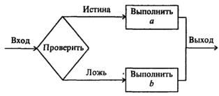 Эта структура называется также «ЕСЛИ - ТО - ИНАЧЕ», или «развилка». Каждый из путей (ТО или ИНАЧЕ) ведет к общей точке слияния, так что выполнение программы продолжается независимо от того, какой путь был выбран.