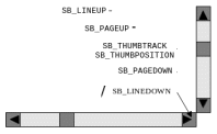 Помимо этих кодов зарезервировано еще два - SB_TOP и SB_BOTTOM, которые никогда не посылаются полосой прокрутки. Собственно полосы прокрутки поддерживают интерфейс только с мышью, фокуса ввода они не получают, поэтому при использовании полос прокрутки возникает необходимость добавления интерфейса с клавиатурой.