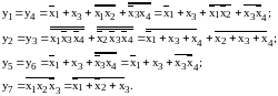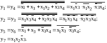 7. Для реализации функциональной схемы в базисе И-НЕ преобразуют полученные МДНФ, применяя законы двойной инверсии и инверсии (закон Де Моргана):