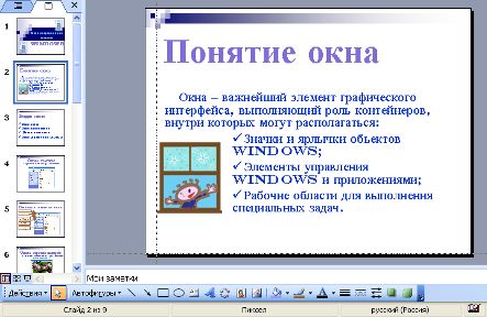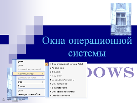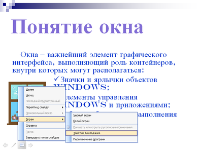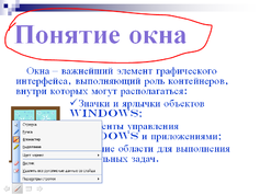 Перейдите к слайду Понятие окна