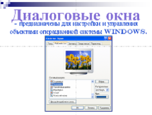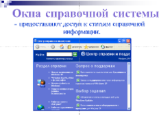 Аналогичным образом создайте иллюстрации для слайдов Диалоговые окна и Окна справочной системы. Используйте в качестве иллюстрации любое диалоговое окно, например, окно Свойства: Экран и окно Центр справки и поддержки.