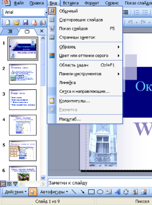 Обычный режим – выводит в левой части окна структуру презентации, а в правой – выбранный. Этот режим принимается по умолчанию.