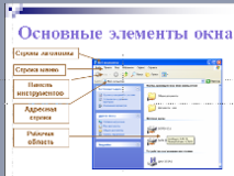 К слайду презентации Основные элементы окна в качестве иллюстрации добавим изображение, созданное нами для слайда Окна папки.