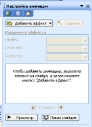 После этого на экране появилась область задач Настройка анимации, позволяющая выбрать эффекты для объектов данного слайда.