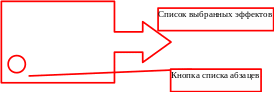 Текст, содержащий несколько абзацев, в общем списке эффектов обозначается в виде раскрывающегося списка. Каждому абзацу изначально присваивается выбранный эффект.