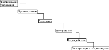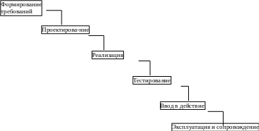 Принципиальной особенностью каскадного подхода (рис.1) является: переход на следующую стадию осуществляется только после того, как будет полностью завершена работа на текущей стадии, и возвратов на пройденные стадии не предусматривается. Каждая стадия заканчивается получением некоторых результатов, которые служат в качестве исходных данных для следующей стадии.