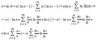 I = log N = log n! - (log n1!+log n2!+...+log nm!).