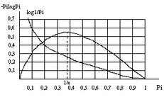 Рис. 2.1. Графики функций log 1/Pi и -Pi log Pi