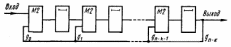Основу кодирующих и декодирующих устройств циклических кодов составляют регистры сдвига с обратными связями, позволяющие осуществлять как умножение, так и деление многочленов с приведением коэффициентов по модулю два. Такие регистры также называют многотактными линейными переключательными схемами и линейными кодовыми фильтрами Хаффмена. Они состоят из ячеек памяти, сумматоров по модулю два и устройств умножения на коэффициенты многочленов множителя или делителя. В случае двоичных кодов для умножения на коэффициент, равный 1, требуется только наличие связи в схеме. Если коэффициент равен 0, то связь отсутствует. Сдвиг информации в регистре осуществляется импульсами, поступающими с генератора продвигающих импульсов, который на схеме, как правило, не указывается. На вход устройств поступают только коэффициенты многочленов, причем начиная с коэффициента при переменной в старшей степени.