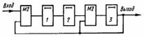 Пример 37. Рассмотрим процесс деления многочлена а(х)хт =(x3+1)x3 на образующий многочлен g(x) = х3+ х2+1. Схема для этого случая представлена на рис. 4.12, где 1, 2, 3-ячейки регистра. Работа схемы поясняется табл. 4.16.