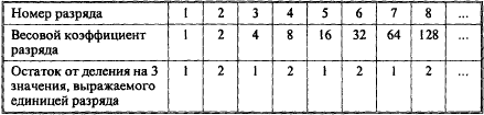 Вычисление остатка начинается с четвертого такта и заканчивается после седьмого такта. Последующие сдвиги приводят к образованию в регистре последовательности из семи различных ненулевых трехразрядных чисел. В дальнейшем эта последовательность чисел повторяется.