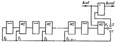 В исходном состоянии ключ К1 находится в положении 1. Информационные символы одновременно поступают как в линию связи, так и в регистр сдвига, где за k тактов образуется остаток. Затем ключ K1 переходит в положение 2 и остаток поступает в линию связи.