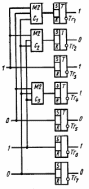 На рис. 4.19 представлена схема декодирующего устройства для этого случая. Табл. 4.20 позволяет проследить по тактам процесс исправления ошибки в кодовой комбинации 1000011 (искажен символ в 4-м разряде).