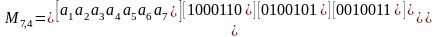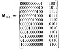 | 1 2 3 4 5 6 7 | 1 0 0 1 0 0 0 | 1 0 0 0 1 1 1 | 0 1 0 0 0 1 1 | 0 0 1 1 1 1 0 | 8 9 10 11 12 13 14 | - - - - - - - | 0 1 0 0 1 1 1 | 1 0 1 0 0 1 1 | 1 0 0 1 1 1 0 |