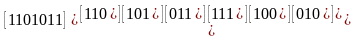 | 1 2 3 4 5 6 7 | 1 0 1 1 - - - | 0 1 0 1 1 - - - | 0 0 1 0 1 1 - - | 1 0 0 1 0 1 1 - | 1 01 001 1001 01001 101001 1101001 |