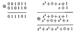 Пример 39. Рассмотрим процесс формирования кодовой комбинации с использованием генераторного многочлена для случая g(x) = x3 + x2 + 1 и а(x) = x3 + 1.