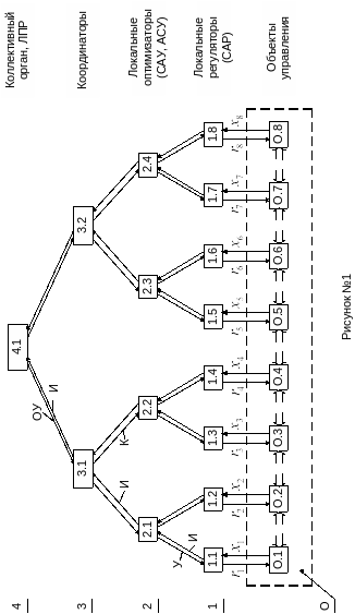 О — объект управления, который тоже является сложным, например, состоящим из восьми подсистем О.1 – О.8.