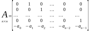 В матричной форме уравнение состояния системы выглядит так: