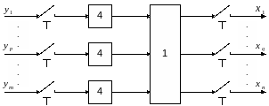 В случае экстраполятора нулевого порядка (Э0П) управляющие сигналы yp(t), действующие на непрерывную часть системы, будут кусочно-постоянными, т.е. yp(t)= yp[iT], iT ≤ t ≤ (i+1)T в скалярной форме или Y(t)=Y[iT] при iT ≤ t ≤ (i+1)T в векторной.