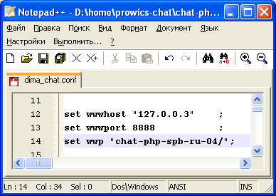 ● Откройте daemon/dima_chat.conf. Впишите имя хоста в поле "wwwhost":