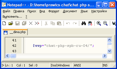 Если вы хотите держать чат НЕ В КОРНЕ вашего веб-сервера, т.е. не по адресу: "http://чат.домен.ру/", а в любом каталоге типа: "http://чат.домен.ру/любой/путь/" то вам нужно изменить параметр $wwp. Здесь нужно написать ту часть URL, которая находится после имени сервера: