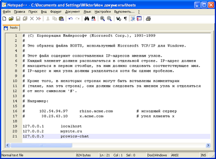 Если у Вас уже установлен рабочий Apache на компьютере, то для размещения чата рекомендуется создать специальный виртуальный сервер prowics-chat: